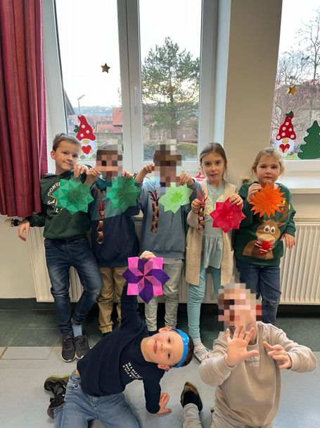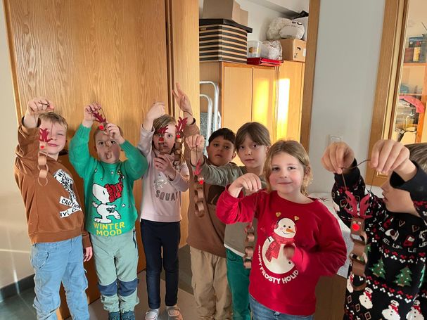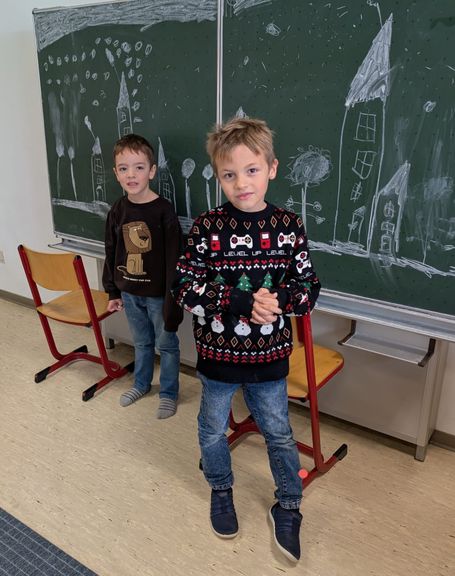 In der OGTS wurde es weihnachtlich! Mit viel Freude, Glitzer und Kreativität haben die Kinder gebastelt, gemalt und dekoriert. Antje und Ulli haben als Betreuerinnen fleißig geholfen, angeleitet und überall unterstützt, wo kleine Hände Hilfe brauchten. So sind viele wunderschöne Bastelarbeiten entstanden, die jetzt für eine liebevolle Weihnachtsstimmung sorgen. Auch an der Tafel haben die Kinder ihr Talent gezeigt und ein weihnachtliches Kunstwerk geschaffen.