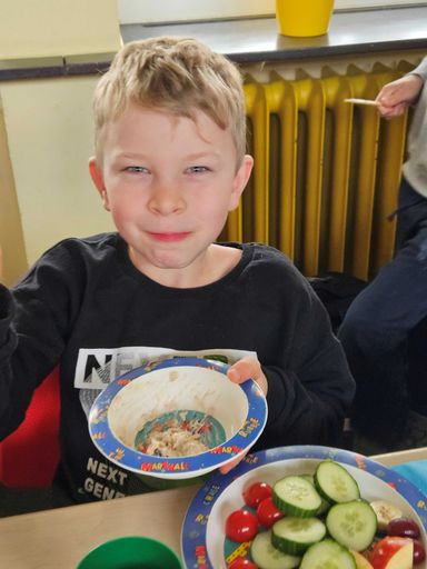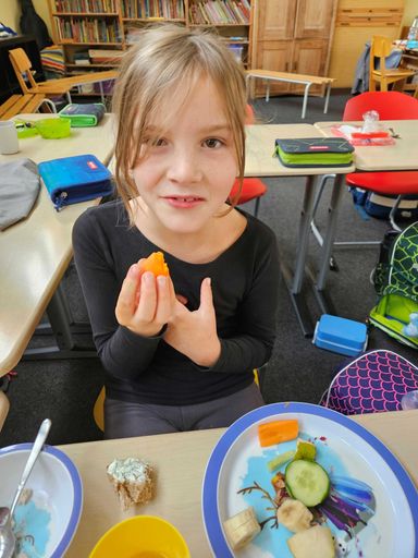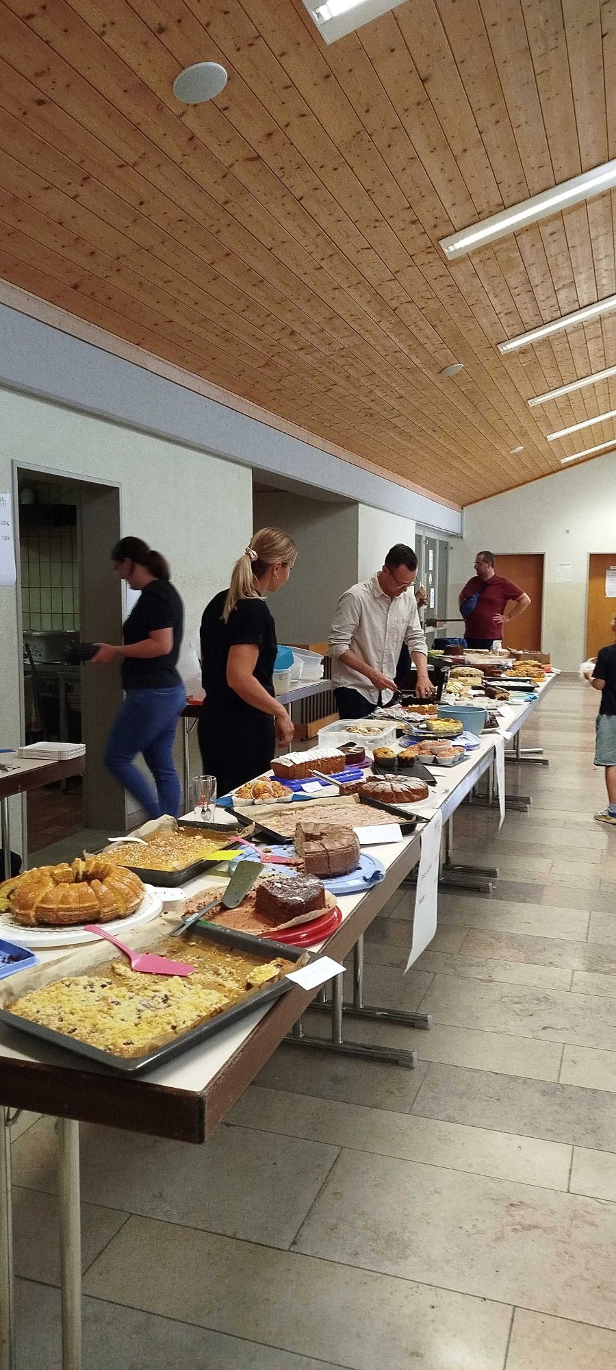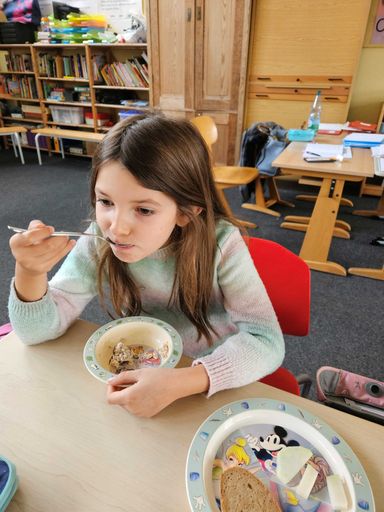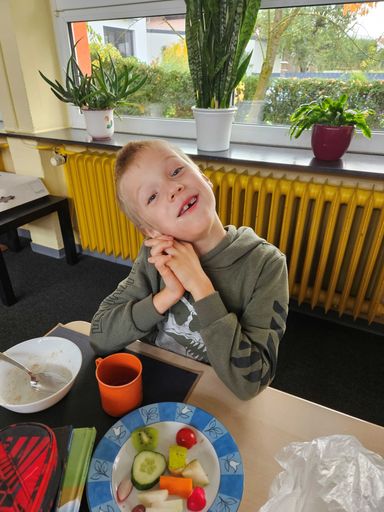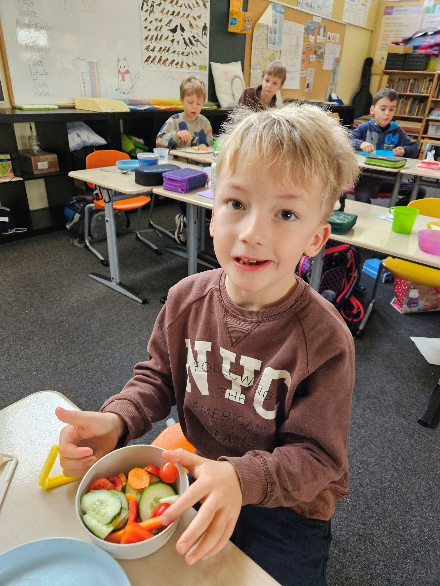 Am 25. Juli 2025 war es wieder soweit: Nachdem sich die Kinder des Schulhauses Rödelsee mit dem Thema Fair Trade und Fair Trade Gemeinde beschäftigt hatten, bereiteten die Zweitklässler ein gesundes Frühstück für alle Kinder zu. Unterstützung bekamen sie dabei von zahlreichen Eltern, Frau Heß von der Vinfothek und ihren Lehrkräften Bernhard Brand und Cornelia Holzheid. Nach dem Rezeptestudieren, dem Händewaschen, Schnippeln, Rühren und liebevollen Anrichten konnten sich dann alle Schülerinnen und Schüler des Schulhauses Rödelsee über ein tolles, fair gehandeltes Frühstück freuen. Und lecker war es auch noch!