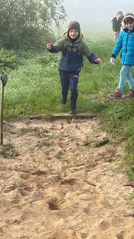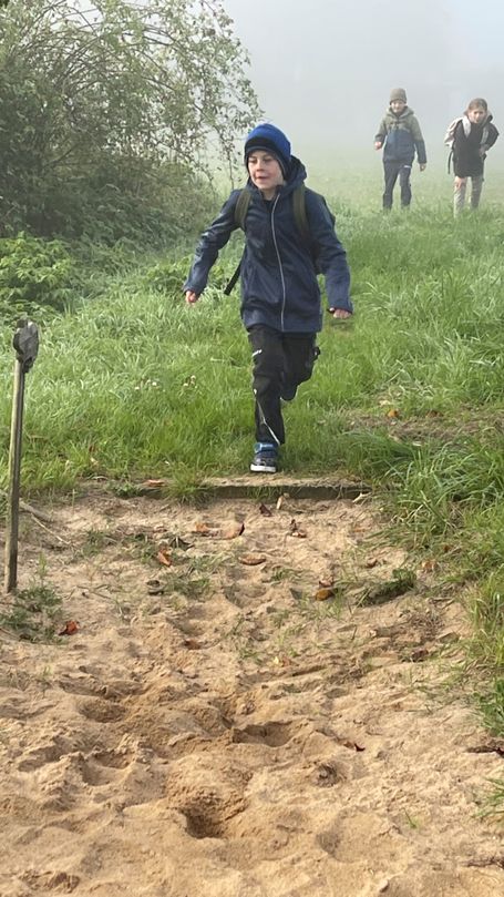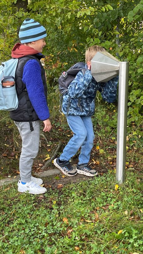 Am 2. Oktober machten sich die 3. Klassen gemeinsam mit Frau Grill und Frau Wenemoser in Richtung „Großer Bärlesweg“ auf den Weg. Bei dichtem Nebel und warm eingepackt probierten die Kinder die ersten Stationen aus. Am „Spinnennetz“ kam auch endlich die Sonne zum Vorschein. Weiter ging es mit Schaukel, Fühlkasten und anderen interessanten Stationen. Nach einer anschließenden Spielepause auf dem Mainbernheimer Spielplatz wurde die restliche Zeit genutzt, um am „Kleinen Bärlesweg“ ausgiebig an der Wasserstation zu spielen. Ein gelungener Tag!