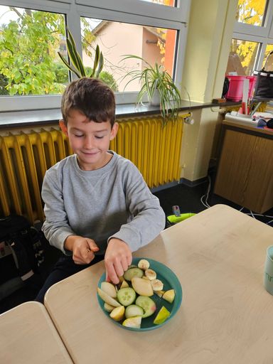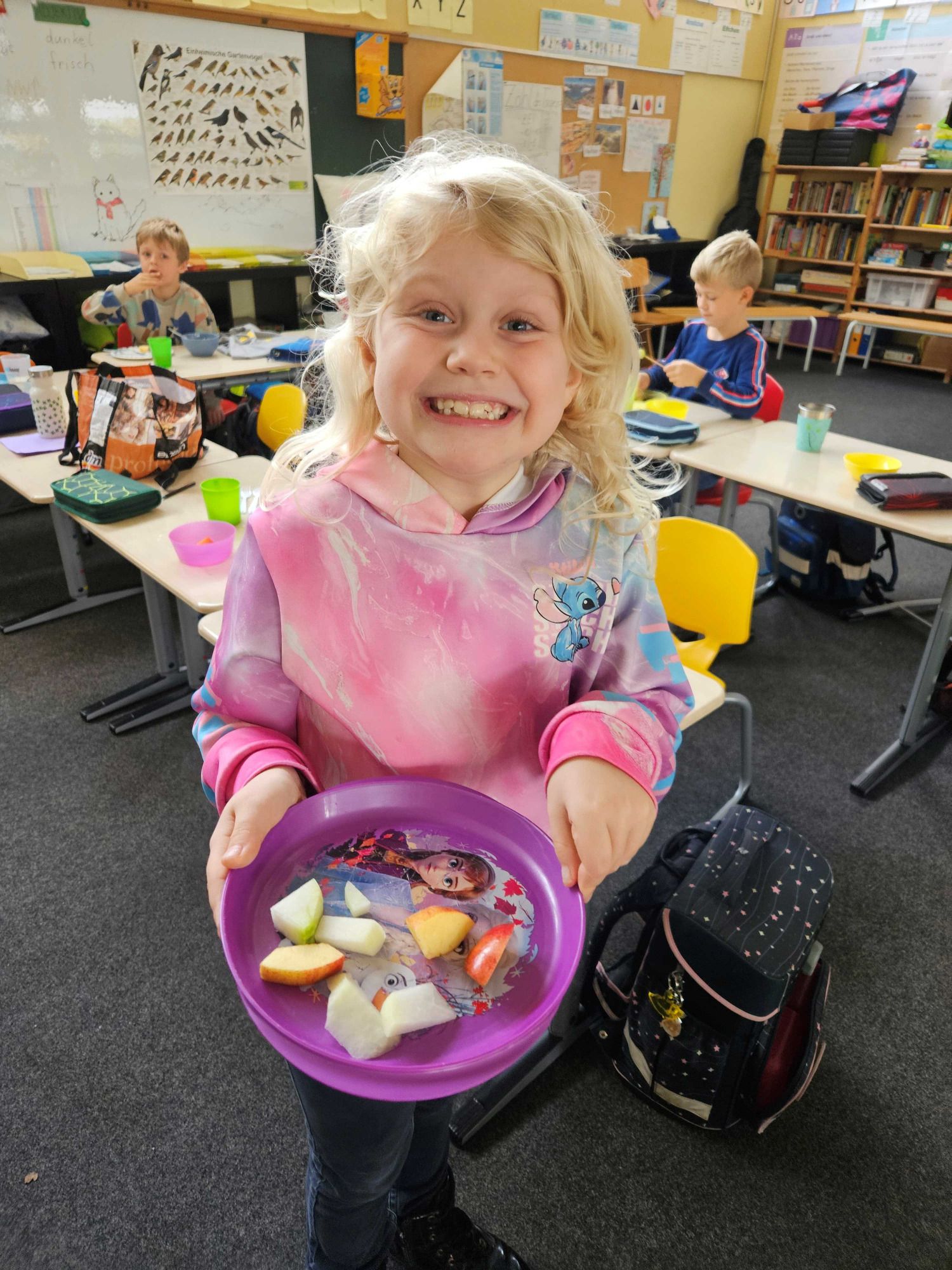 Emsiges Treiben herrschte am Freitag, den 17.10.2025 im Schulhaus in Rödelsee: Die zweiten Klassen bereiteten ein gesundes Frühstück für die Erstklässler und sich vor. Da Rödelsee eine Fair Trade Gemeinde ist, liegt es den Rödelseern am Herzen, den Kindern näher zu bringen, was FairTrade ist. Im Rahmen der Woche der „Gesundheit und Nachhaltigkeit“