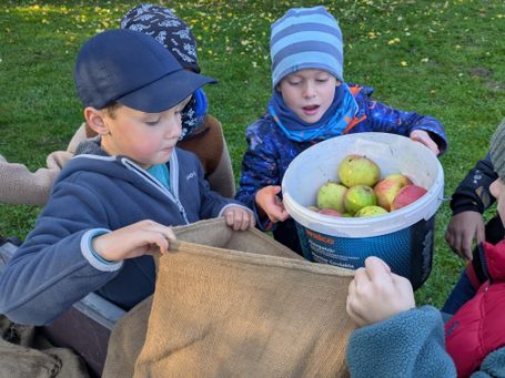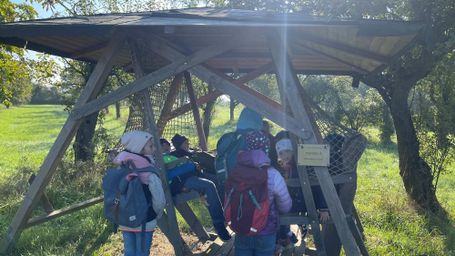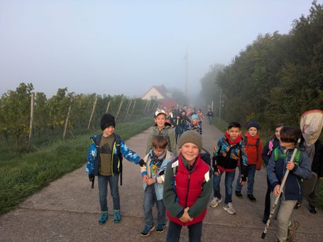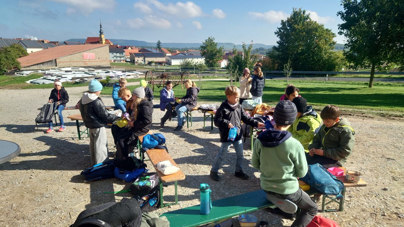 Zum Abschluss der ersten Schulwoche durften die Erstklässer aus dem Schulhaus Rödelsee am 19. September zu einer Wanderung aufbrechen. Bei strahlendem Sonnenschein ging es durch Rödelsee nach Fröhstockheim. Dort spielten alle ausgelassen auf dem kleinen Spielplatz bevor es zum nächsten Stopp weiterging: In Johanns Garten gab es für alle einen Muffin und die Möglichkeit, Kastanien zu sammeln. Gestärkt und fröhlich ging es dann zurück zur Schule und ab ins wohlverdiente Wochenende.
