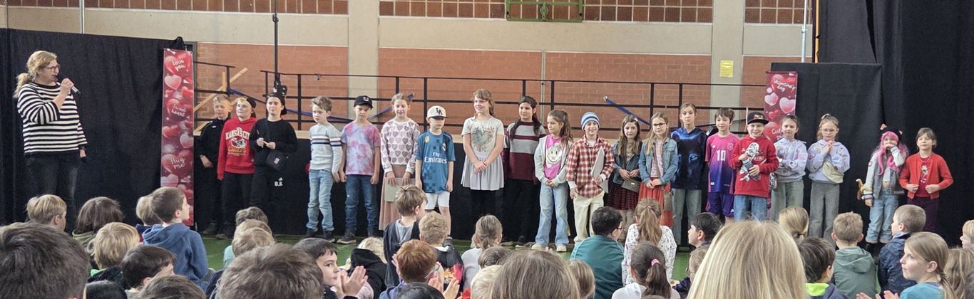 Zu Fasching nahm unsere Theater-AG mit dem Sketch "Winnetou 6" die aktuellen Informationstechnologien auf die Schippe. Statt mit Smartphone oder Handy kommuniziert man heutzutage, wenn man cool sein möchte, mit "Bländys" (Blöcken). Und die Elternbriefe verschickt Frau Grill nur noch mit dem Rändy (Rauchzeichen). Wie SMS zu verschicken funktioniert, was es mit DSL (Detlev sprintet locker) oder SMQ (sehr mieser Qualm) auf sich hat, oder ob man vielleicht gleich das eigene Netz nutzen soll - all dies brachten unsere kleinen Schauspielerinnen und Schauspieler humorvoll für die Kinder unserer 2.-4. Klassen auf die Bühne.