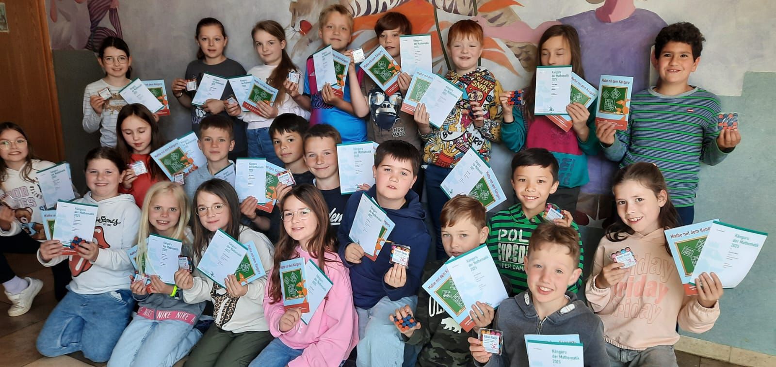 Am 20. März 2025 fand der 31. Känguru-Mathematikwettbewerb in Deutschland statt. Auch die Dritt- und Viertklässler der Grundschule Mainbernheim stellten sich wieder dieser Herausforderung. In 75 Minuten musste für die 24 Aufgaben jeweils die richtige von fünf vorgegebenen Antworten gefunden werden.