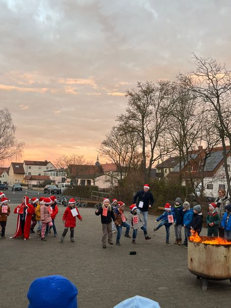 Fast schon Tradition: am letzten Tag vor den Weihnachtsferien fand unsere schulhausinterne kleine Weihnachtsfeier auf dem Pausenhof in Rödelsee statt - selbstverständlich mit Feuerschale! Vielen Dank hierfür!