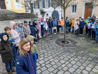 Mit einem für ihn gedichteten Lied gratulierten wir Bürgermeister Kraus zu seinem Geburtstag. Für die Zeit, die er in Rathaus und Schule geprägt hat, haben wir uns einen besonderen Namen ausgedacht: die KRAUSZEIT.