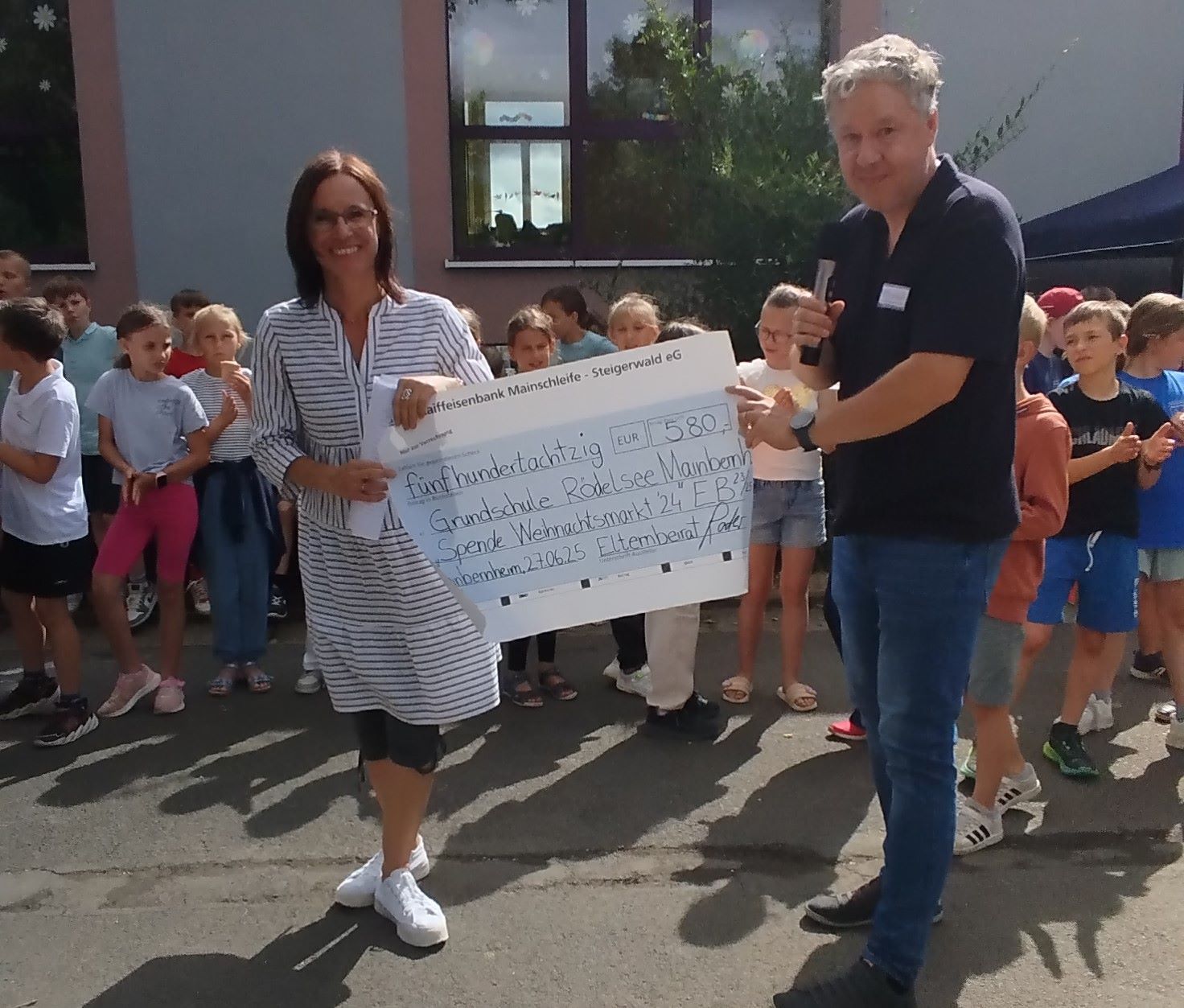 Nachdem im letzten Jahr der VR-Bank-Bonuslauf aufgrund des widrigen Wetters abgesagt werden musste, konnten am 31.05.2025 wieder zahlreiche Teilnehmerinnen und Teilnehmer für die Grundschule Mainbernheim in Kitzingen an den Start gehen. Dabei wurden nicht nur einige Kilometer zurückgelegt, sondern es wurde auch wieder ein beachtlicher Geldbetrag erlaufen. Zusätzlich hatte unsere Schule noch das Glück, dass wir einen weiteren Bonus von 250,-€ erhalten haben.